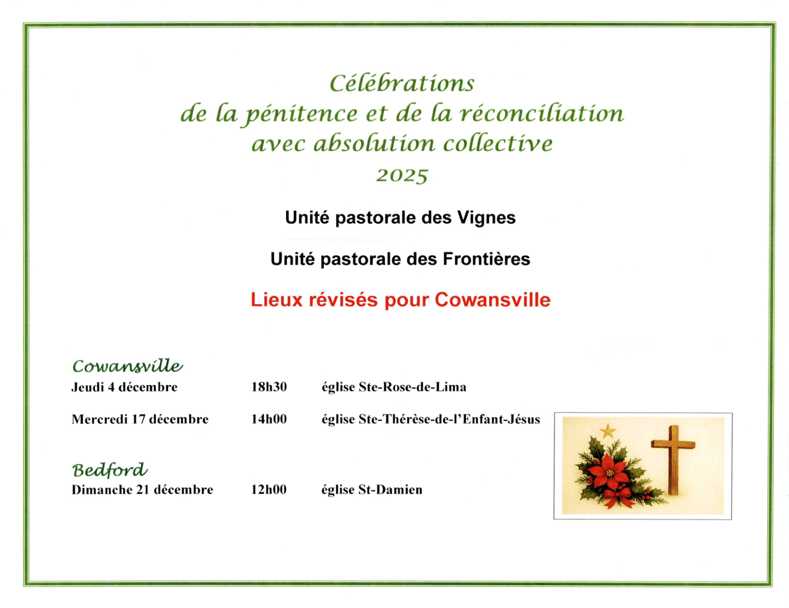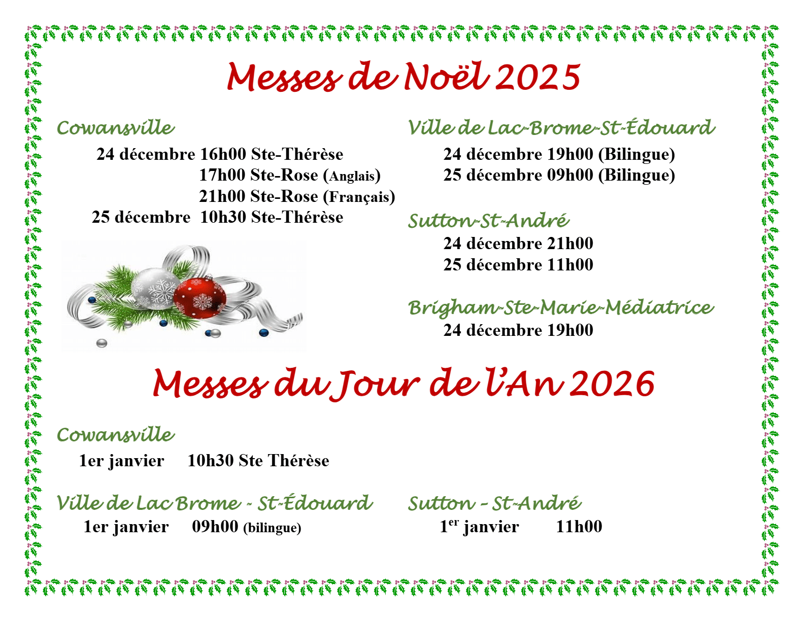 Vous pouvez manifester votre intérêt pour cette activité en communiquant avec le secrétariat de la paroisse St-André de Sutton : info@eglisestandre.org